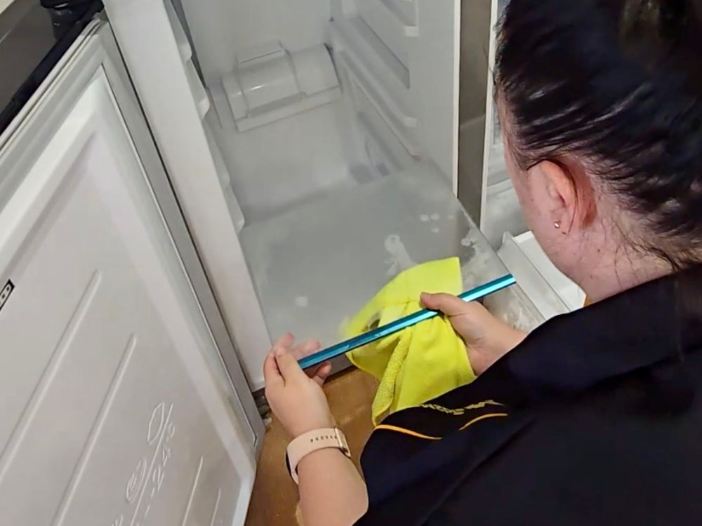 Maid2Match Geelong professional house cleaner cleaning a freezer drawer