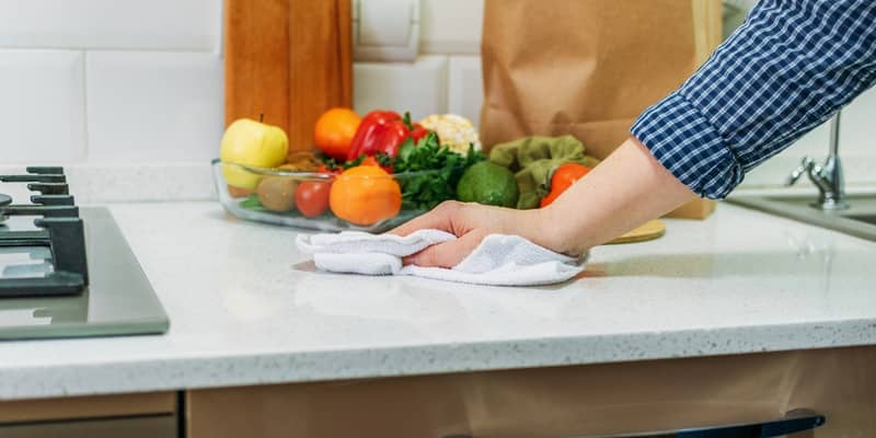 Moreover, aim to wipe your benchtop daily, or after each use if you cook often.