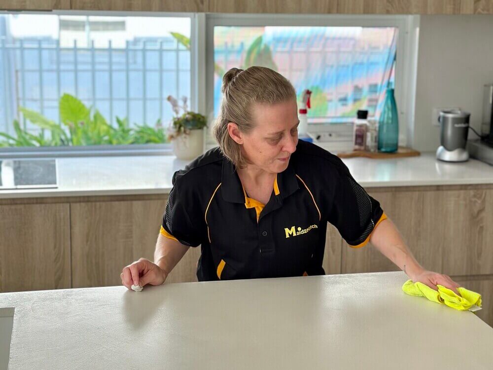 Maid2Match Brisbane NDIS cleaner Nicole cleaning benchtop